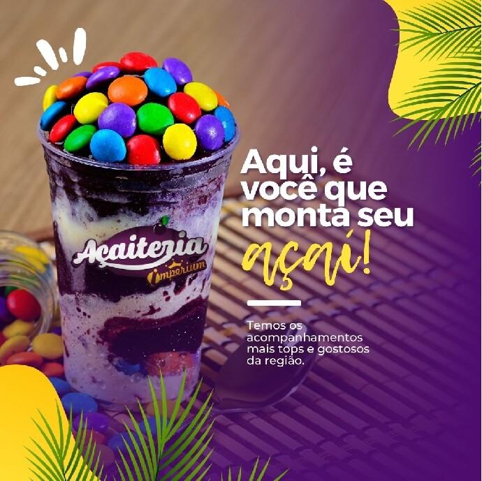 AÇAI + 1 FRUTA + 5 ACOMP. + 2 CREME + 1 CALDA + 1 COBERTURA